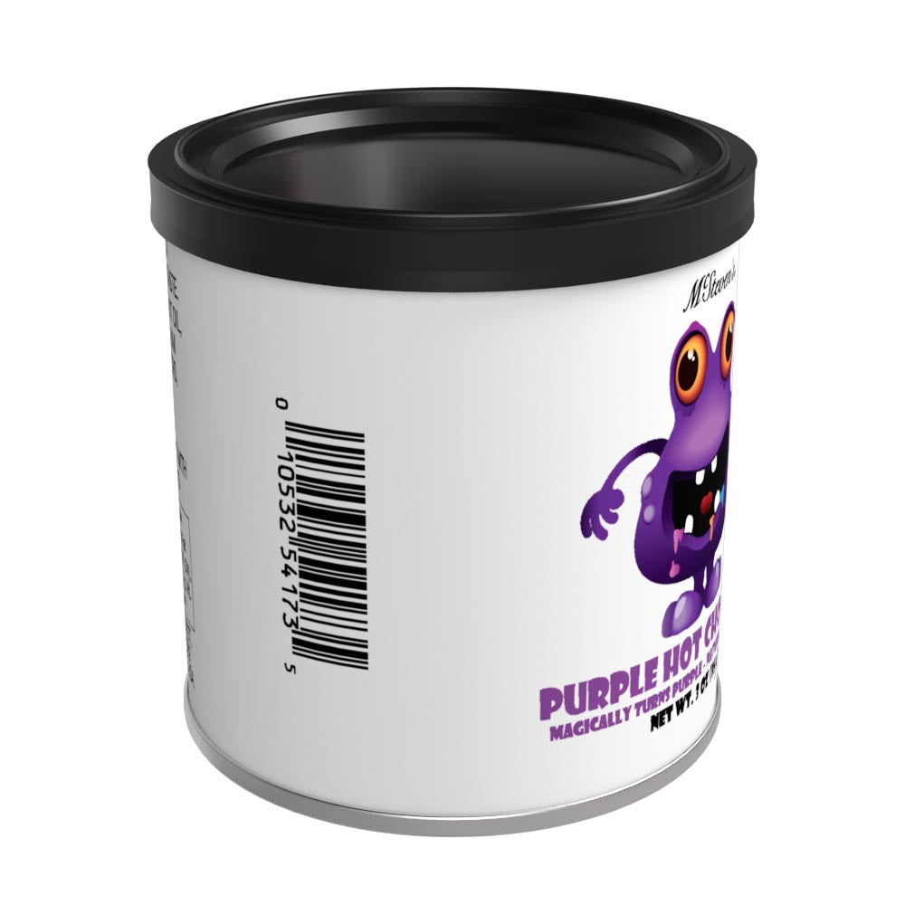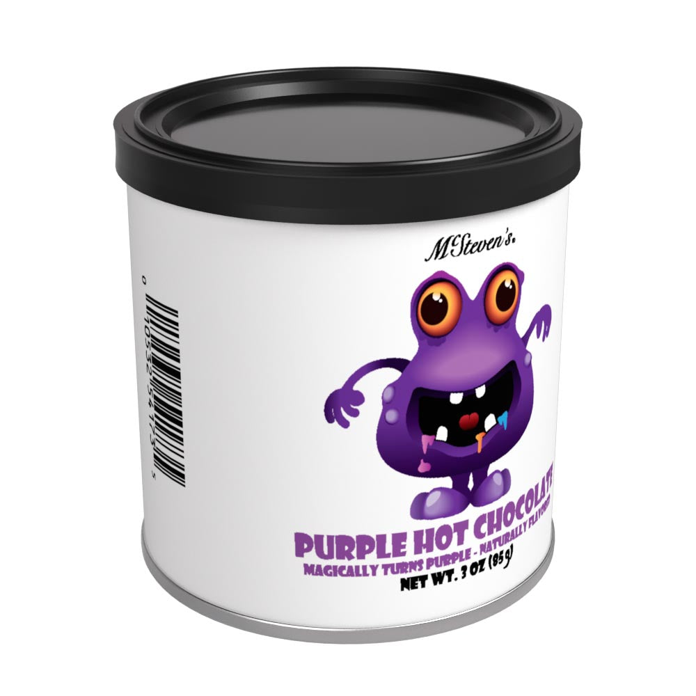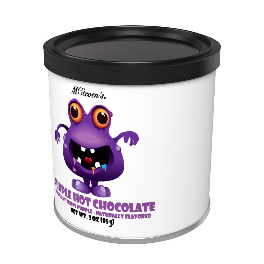 Have fun with these colorful creatures - not scary, just cute! Watch this Belgian White Hot Chocolate turn PURPLE, by simply adding warm water. This container is the perfect size for your little monster. Net weight 3 oz.